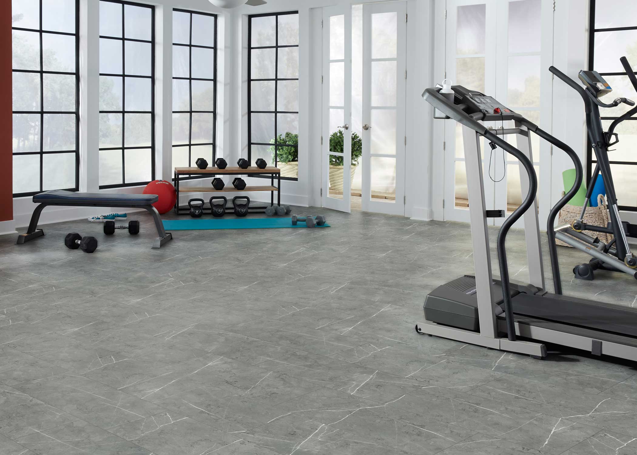 The sophisticated stone look of our Grigio Salerno rigid vinyl tile brings a cool neutrality that enhances Industrial vibe with simple, unadorned character. Muted gray hues serve as a celebration of the utilitarian ethos behind Industrial style, and provide a versatile canvas for you to experiment with metal accents, exposed beams, brick walls, and other raw structural elements.