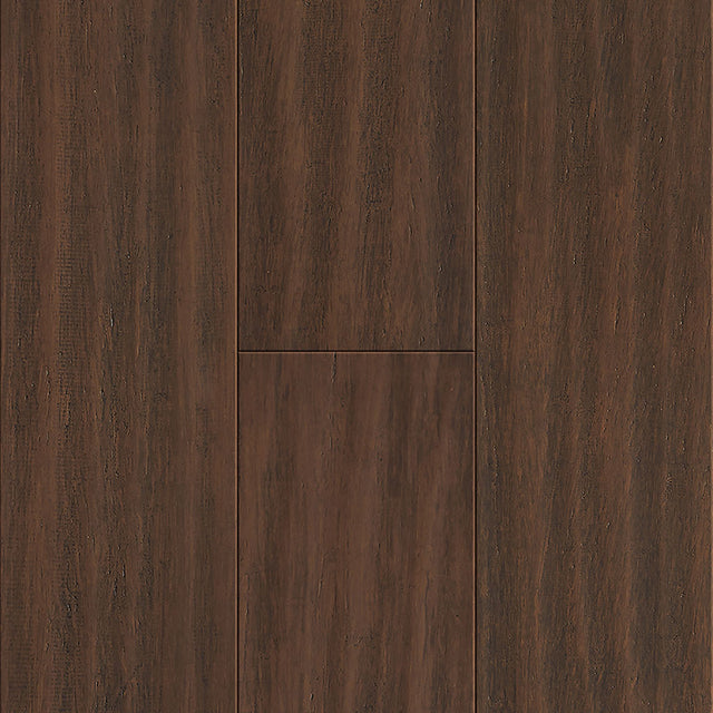 Whether in your home or at your business, this Timberline bamboo flooring by AquaSeal will create a refined atmosphere in any room. With rich brown tones and dark grain accents, these versatile floorboards will compliment a variety of interiors. The stained finish creates an elegant look that highlights the unique character of the natural grain while adding a rustic, wire-brushed texture.