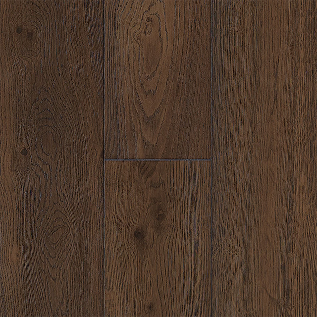 Our Bourbon European Oak engineered hardwood flooring features a rich, warm hue with natural wood grain patterns enhanced by a distressed surface treatment. Generous 7.5" wide planks create a bold, open feel in any space, making rooms appear grander and more inviting. Each plank showcases authentic oak character with subtle variations in tone and texture, while the distressed finish adds depth and rustic charm. Additionally, this engineered hardwood features a sturdy core that provides superior stability against temperature and humidity fluctuations, making it suitable for installation in moisture-prone areas.