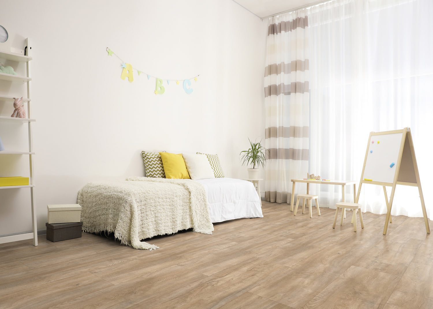AquaSeal 24 is designed to replicate the natural grain, color, and texture of real hardwood, with extra water protection. Its innovative locking technology prevents liquids from seeping between the planks, protecting your floor from everyday spills and accidents for up to 24 hours. And, thanks to its protective wear layer, AquaSeal laminate floors are resistant to scratches and gouges, making them a great solution for busy families and large pets.