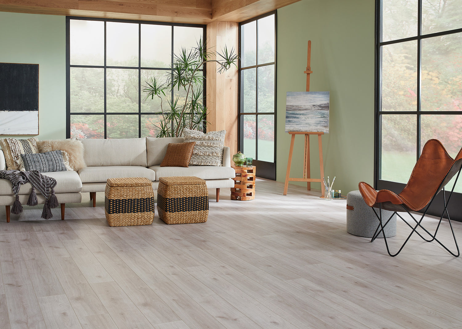 Create a sanctuary steeped in gentle warmth with our Ravello Oak ReNature by CoreLuxe flooring. Brilliant natural oak hues—resembling sun-washed driftwood—are enriched by a sublime matte finish. Subtle hand-scraping reveals intricate organic grain, creating an additional layer of artisanal texture and interest.