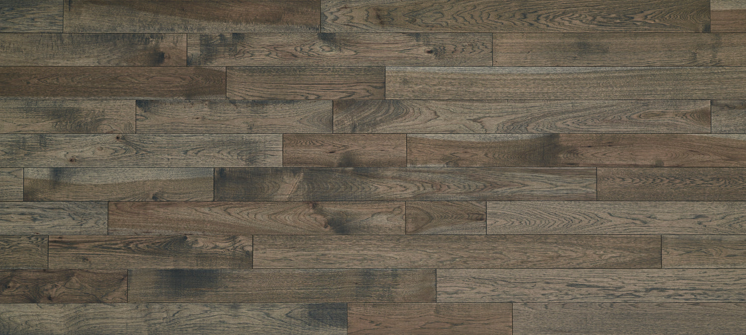 Haversham Hickory's subtle wire brushed texture, low gloss, dual stain finish, and rich natural colors highlight the intricate and varied graining of this stunning and durable Bellawood Artisan solid Hickory floor. The wide planks deliver unique on-trend style and design, exceptional quality, and durability.