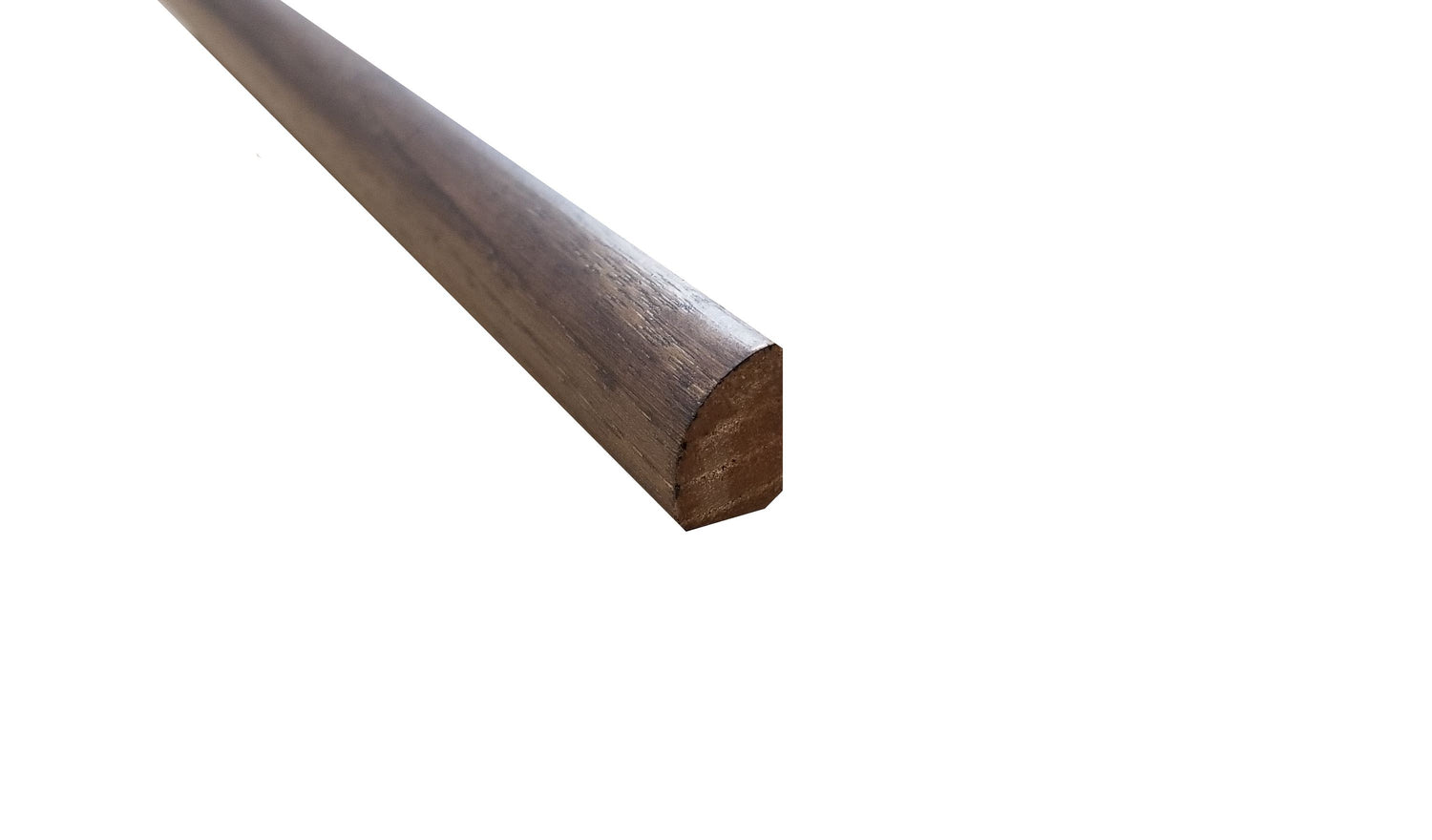 Transitions between a wood floor and a vertical surface under cabinetry. Also serves as a substitute for Quarter Round when space is limited