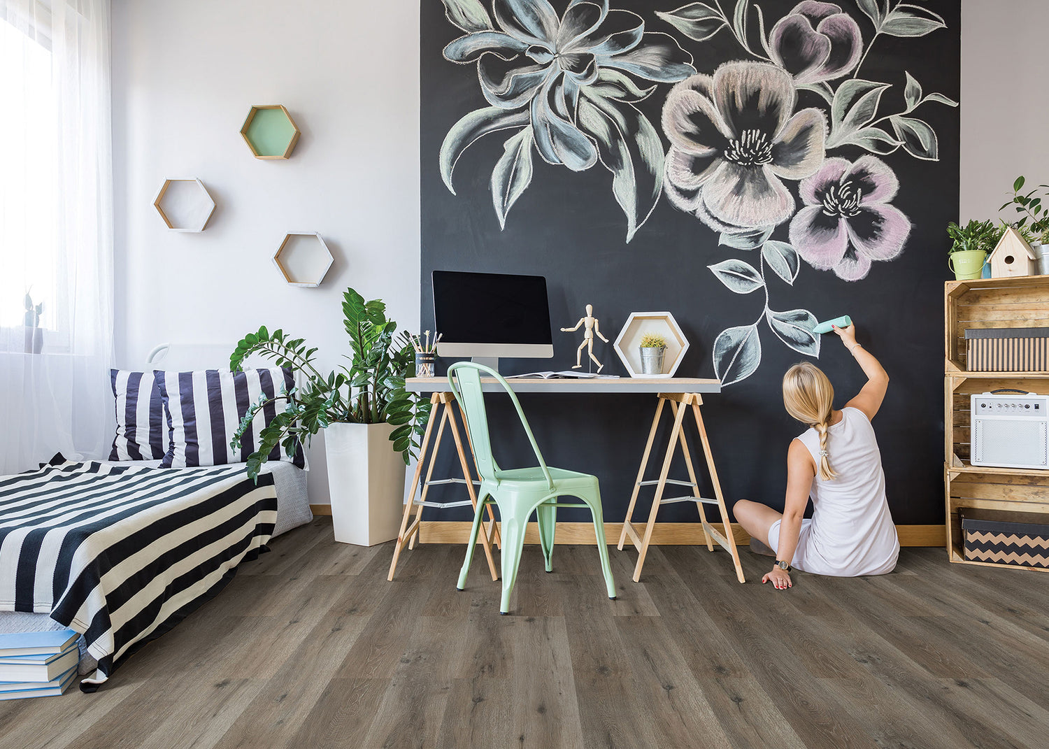 Remember that lighting makes all the difference! Your flooring, as a result, may look different in your home than it does online or in the store due to natural variation, lighting conditions, and differences in room size, layout, and surrounding décor.